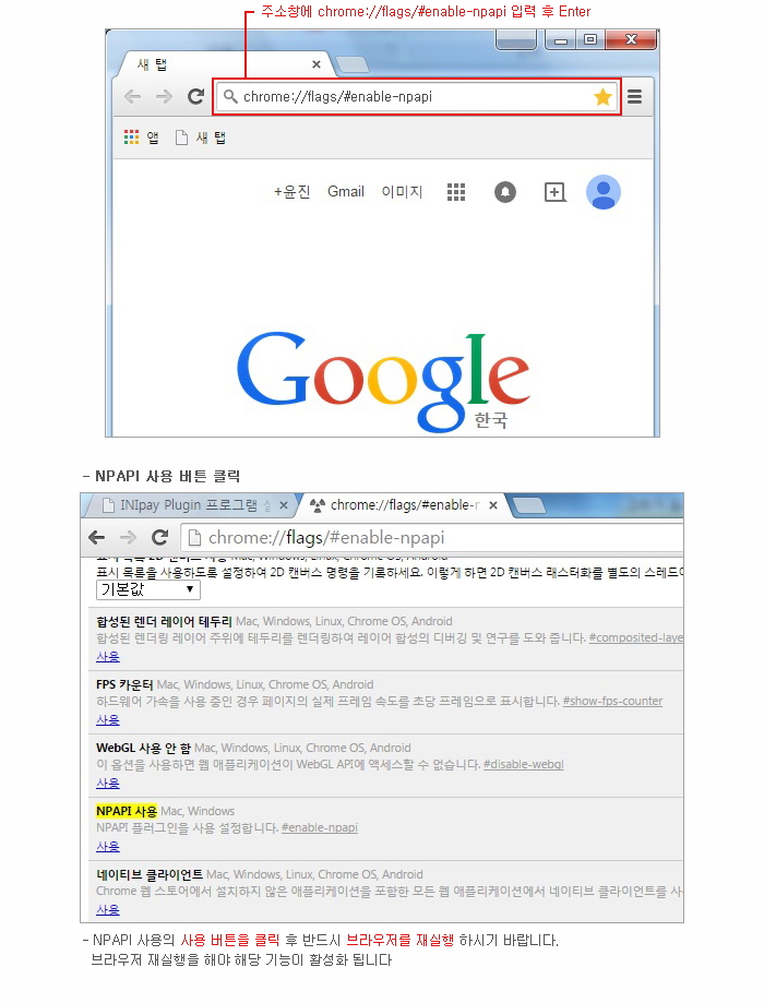 chrome://flags/#enable-npapi 입력 후 엔터.